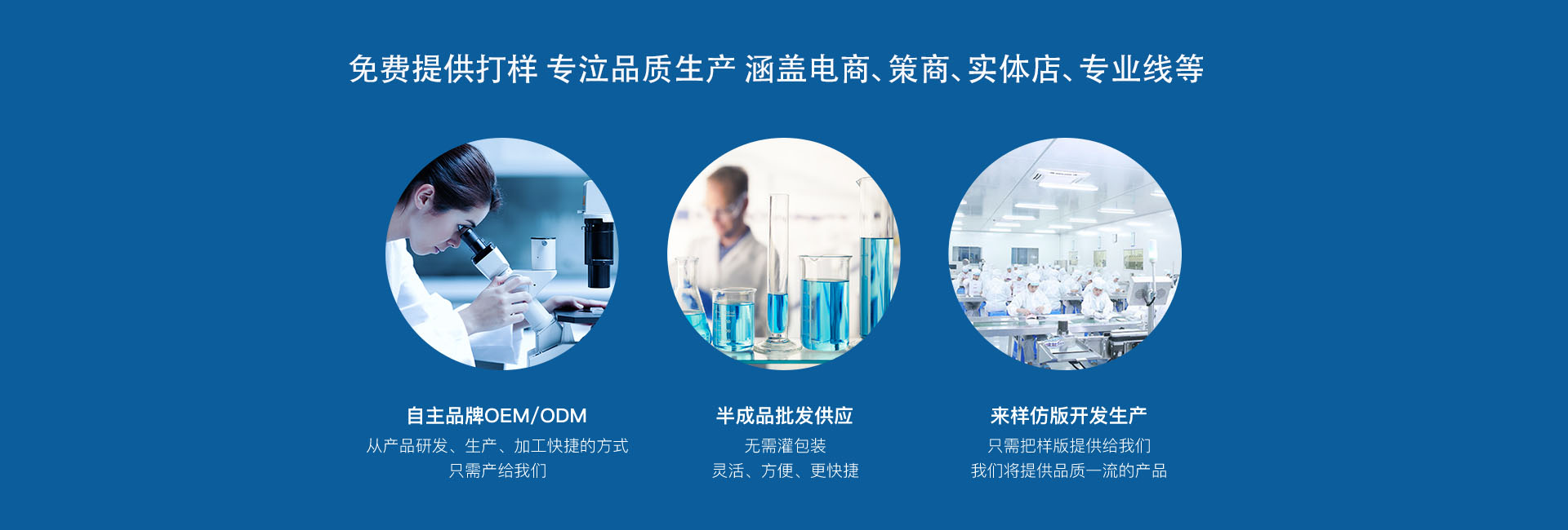眾德生物科技以化妝品、面部功效型問(wèn)題型肌膚用品科研,生產(chǎn)銷(xiāo)售、品牌策劃、OEM/ODM專(zhuān)業(yè)貼牌/代加工,微商/網(wǎng)商/視商凈膚美膚護(hù)膚品、面膜系列產(chǎn)品加工,一抹瘦減肥產(chǎn)品代加工,養(yǎng)生保健品代加工等。 珍貴原材料渠道眾多國(guó)際產(chǎn)地直供,國(guó)內(nèi)外貿(mào)易服務(wù)的強(qiáng)大組合,造就眾德能生產(chǎn)出符合國(guó)際品質(zhì)標(biāo)準(zhǔn)的物美質(zhì)優(yōu)價(jià)廉的,大眾喜愛(ài)的好產(chǎn)品。
